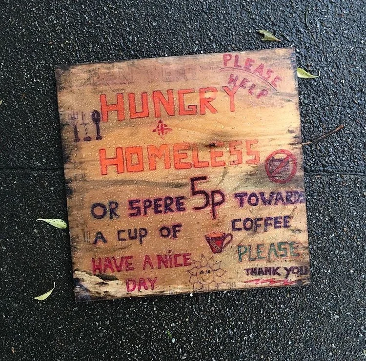 Homeless Persons Sign, Someones Rubbish, Brighton and Hove, 2017.